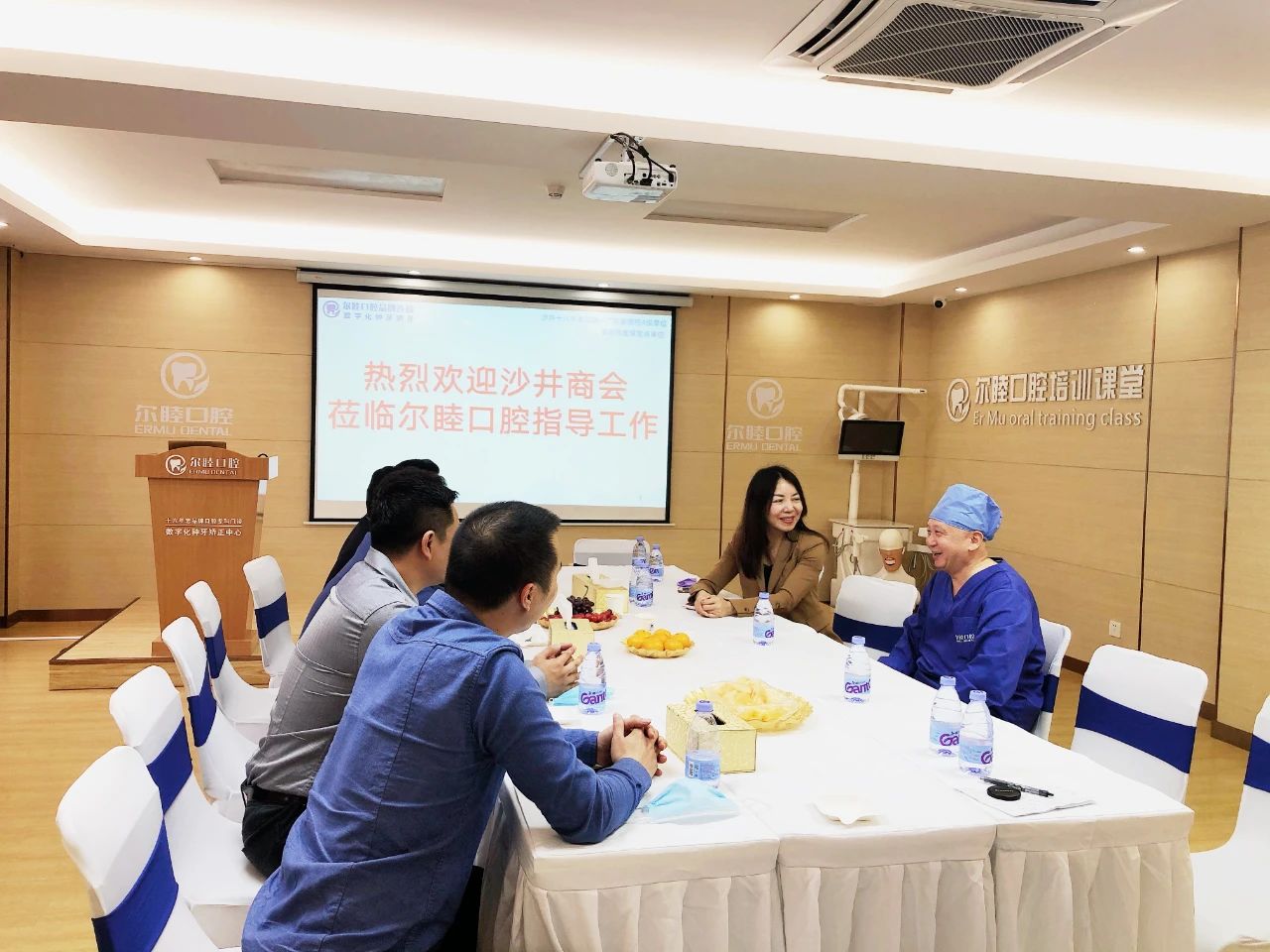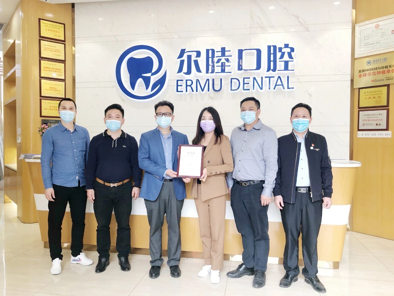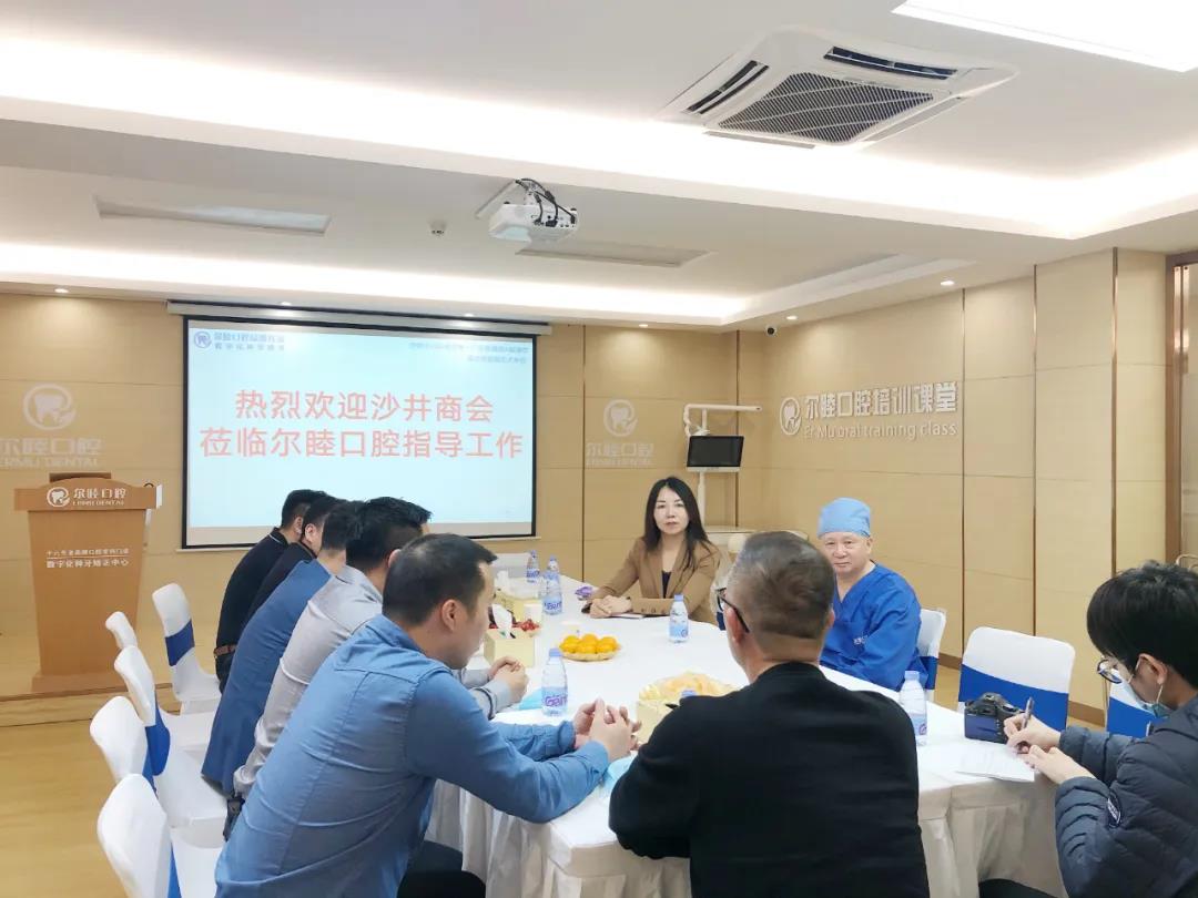 2020年4月8日,由区人大代表、沙井商会执行会长陈允权率队,沙井街道企业创新服务中心副主任、商会常务副会长樊景希,沙井商会党支部书记、常务副会长黄永生,商会副会长高达平,秘书长何汝毅、副秘书长林耀斌一行前往尔睦口腔指导工作,受到尔睦口腔修复科刘唯院长、尔睦口腔运营总监刘付娥女士的热烈欢迎!