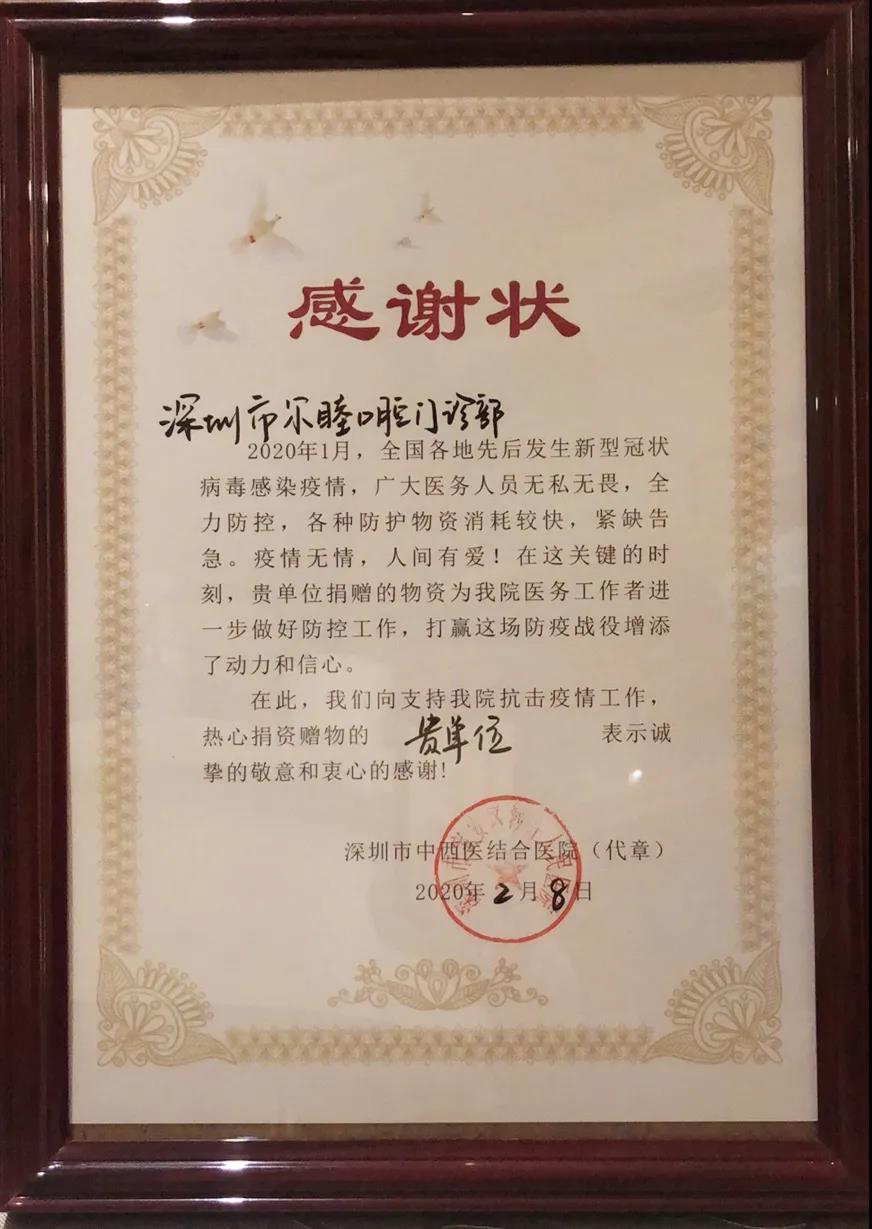 疫情之下,当抗疫物资紧缺时,尔睦口腔主动向沙井人民医院捐赠医用口罩、手套、帽子等防护物资,向沙企社区捐赠医疗隔离衣;在一线医护人员需要支援时,尔睦人踊跃报名想要成为医务志愿者。为此,沙井商会高度认可尔睦口腔助力抗疫之举,并为尔睦口腔颁发“感谢状”!